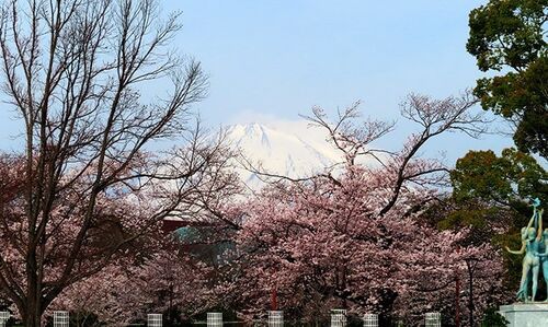 まつだ桜まつり会場からは、酒匂川と富士山が望める。